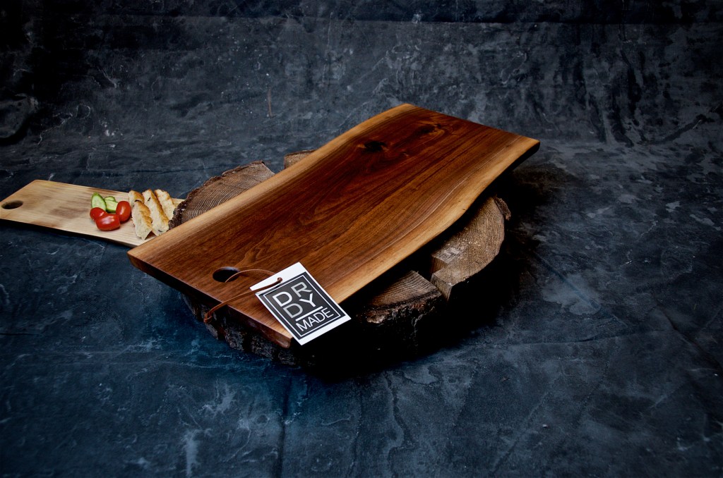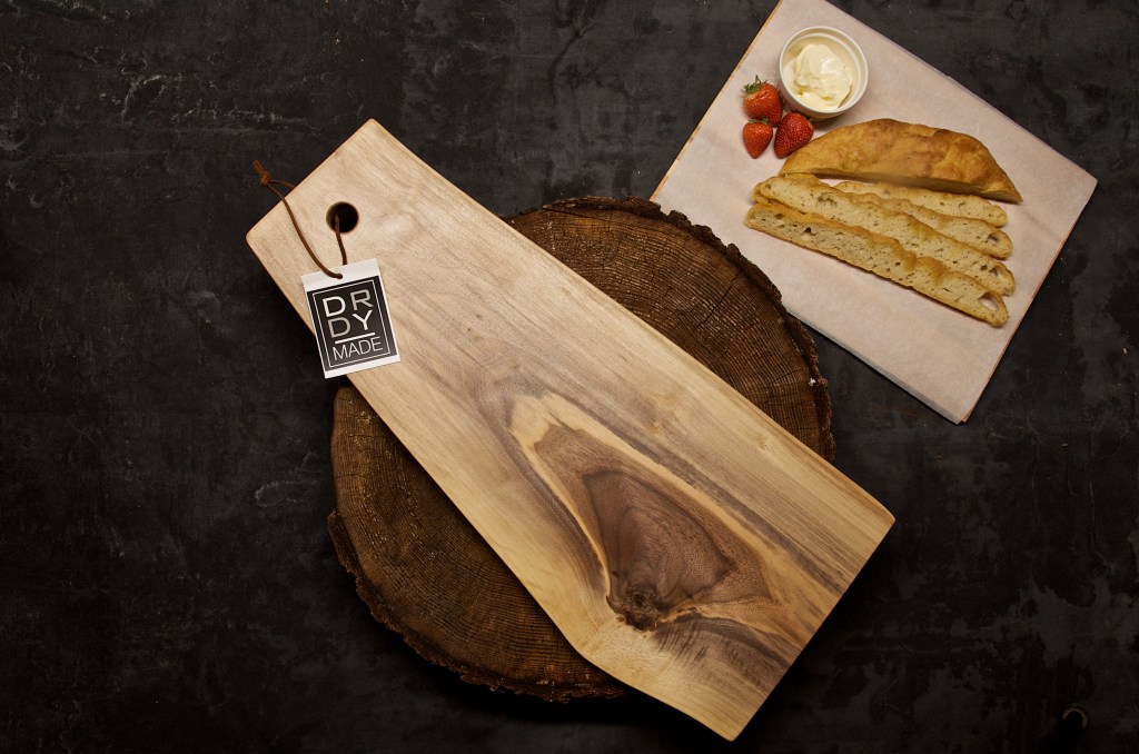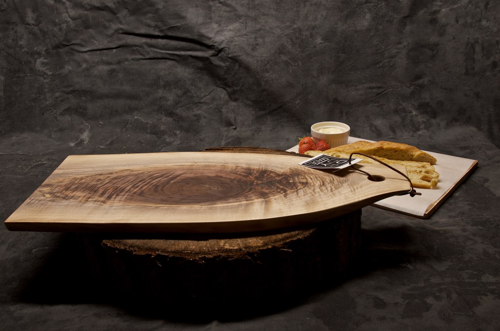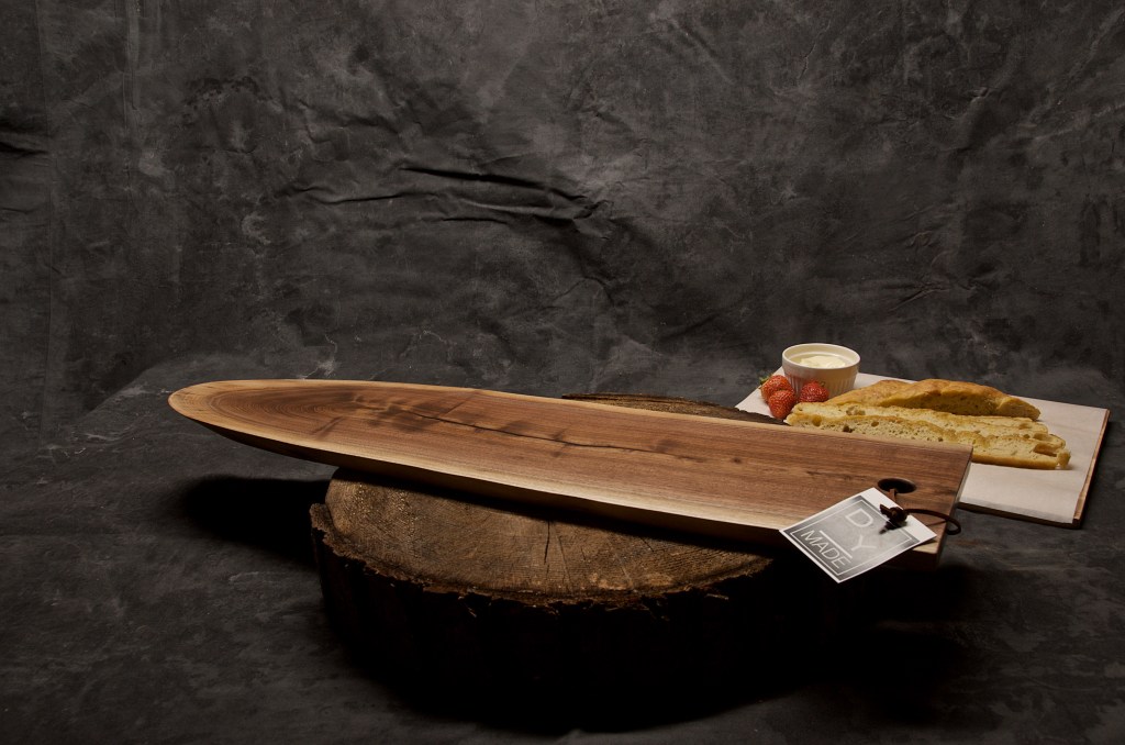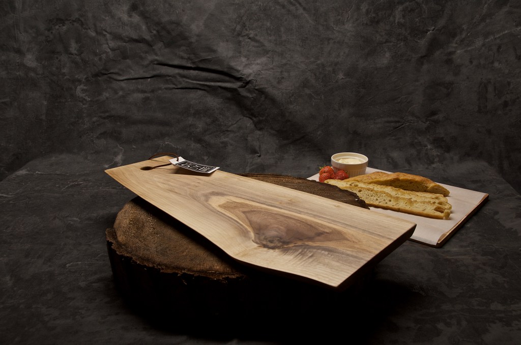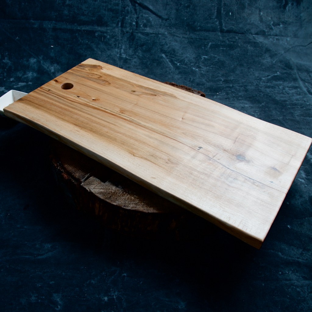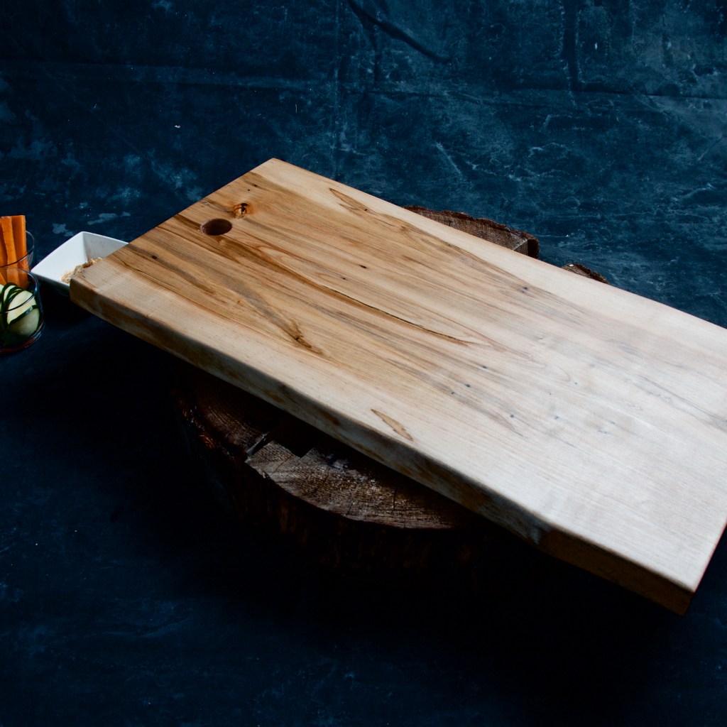Our boards are locally sourced, live-edge Walnut or Maple hardwood. Hand selected for their distinct characteristics and grain pattern. Each board is honed and sanded with multiple courses of sandpaper until smooth. We finish each board with multiple coats of food grade oils and seal with bees wax, coconut oil, pure mineral oil and vitamin E.